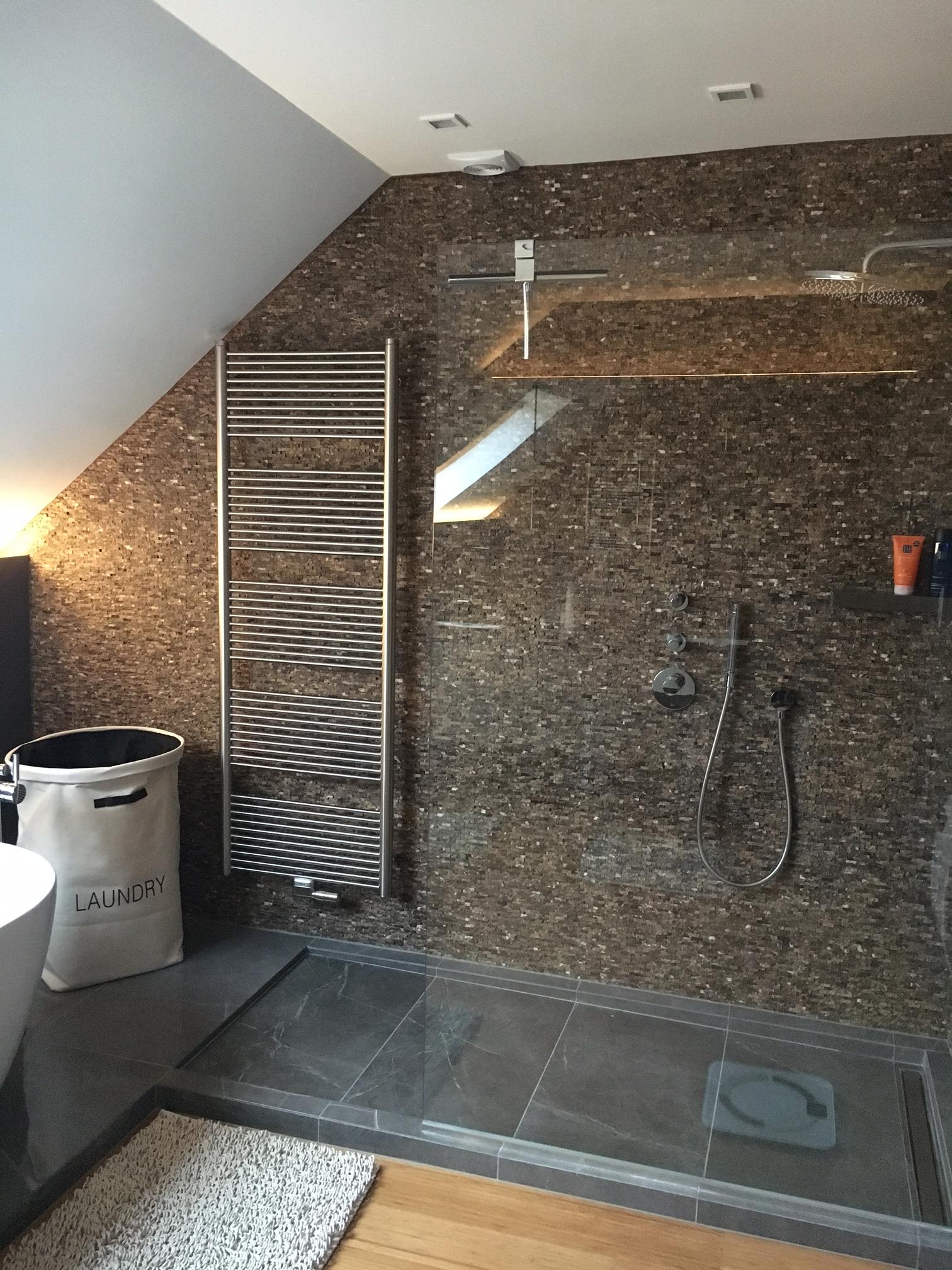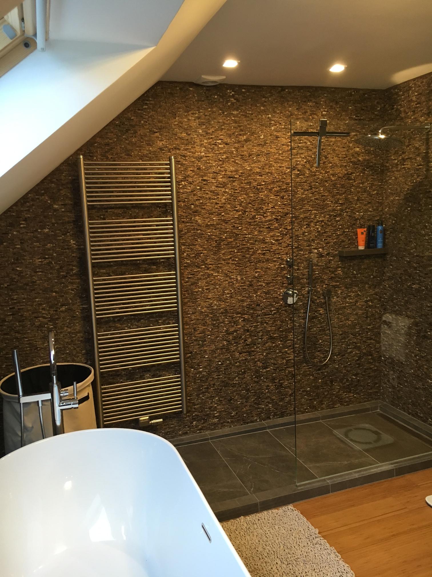 - Réalisation du carrelage de la douche à l’italienne, du bas et du pourtour de la baignoire ;