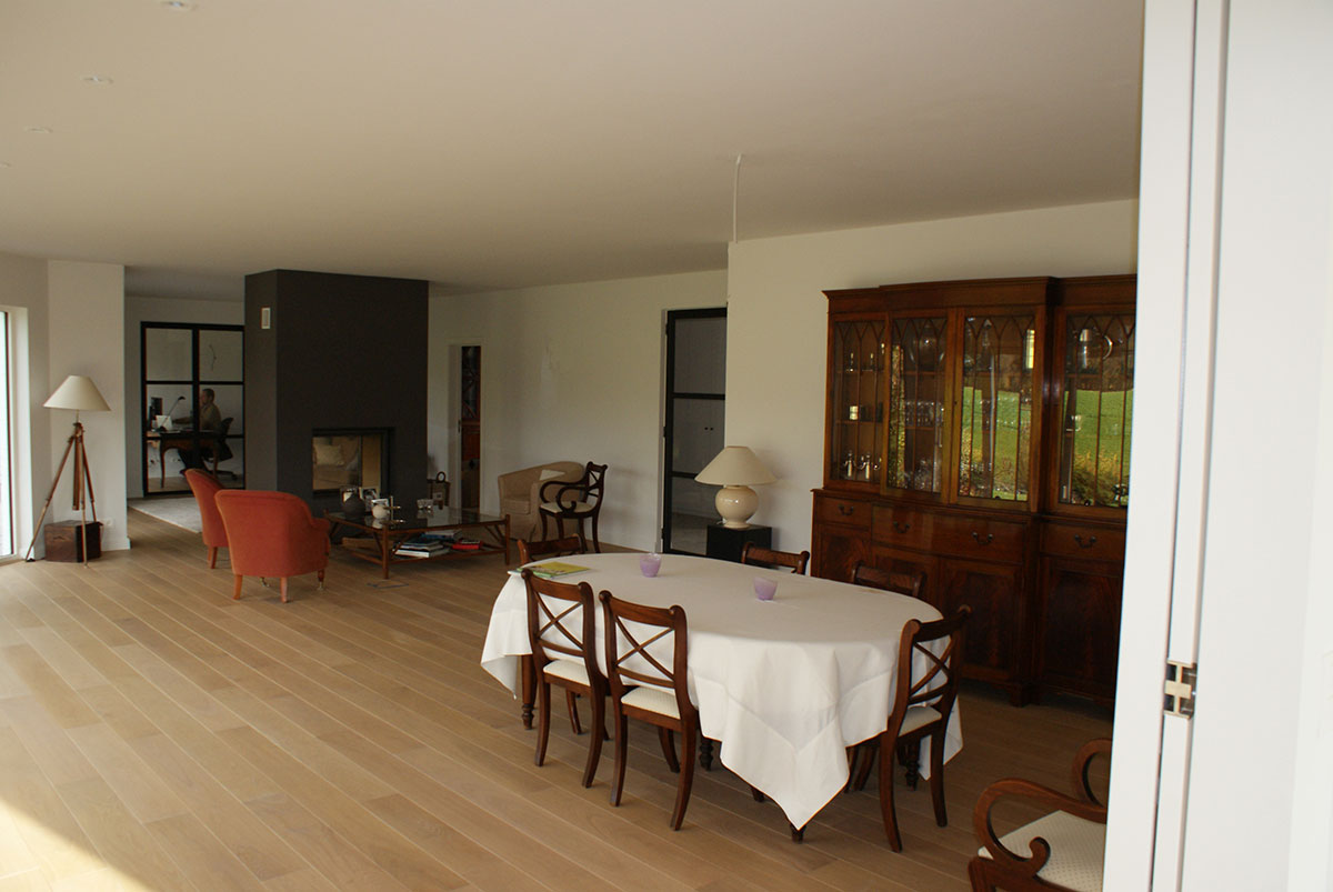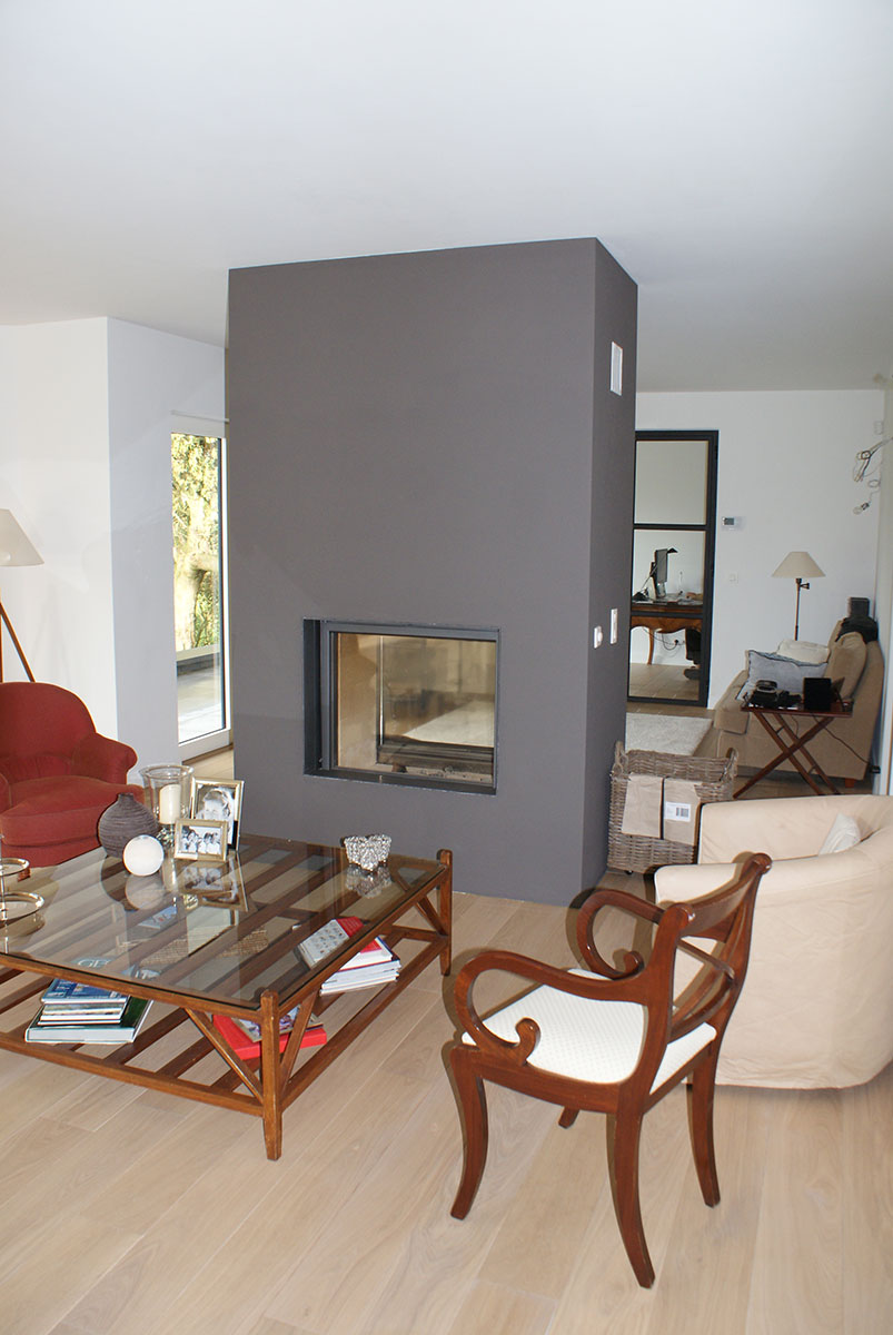 Rénové dans un esprit familial, ce grand séjour offre toute la modernité d’une maison neuve tout en gardant un esprit rustique et familial. La grande cheminée centrale à double foyer fait le bonheur de toute la famille.